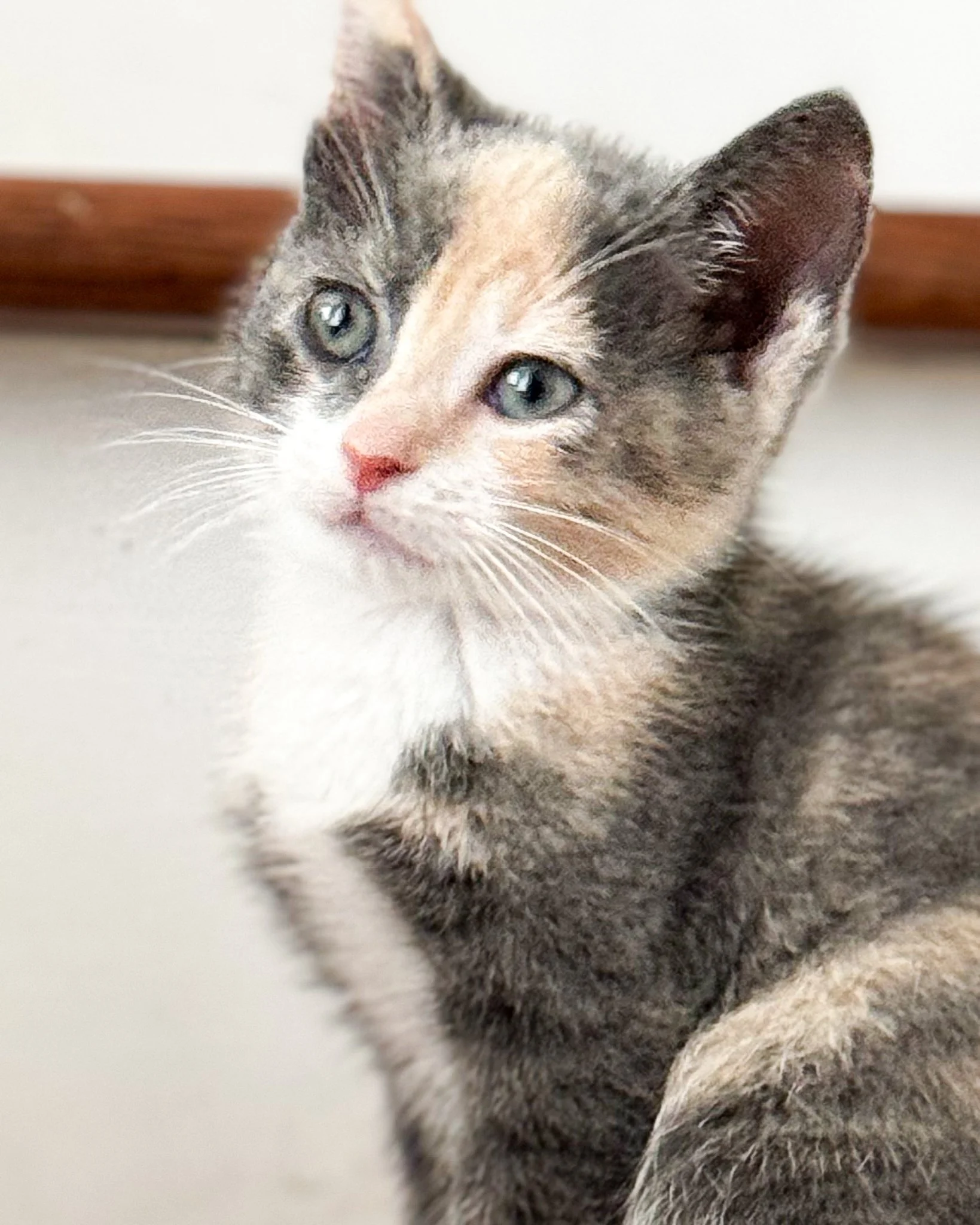 I was abandoned as a tiny kitten with my mom and siblings on an empty apartment balcony and luckily discovered and rescued. Since then, I have grown and learned so much while in foster with my mom and sisters.